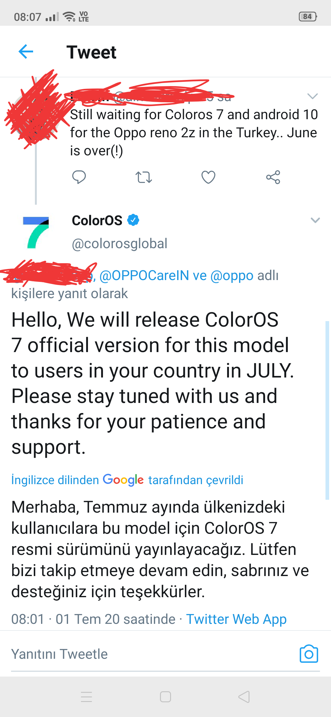 ColorOS Resmi hesabından tarafıma verilen yanıt ekteki gibidir. Malumunuz 1 ay daha beklenecek. :rolleyes: